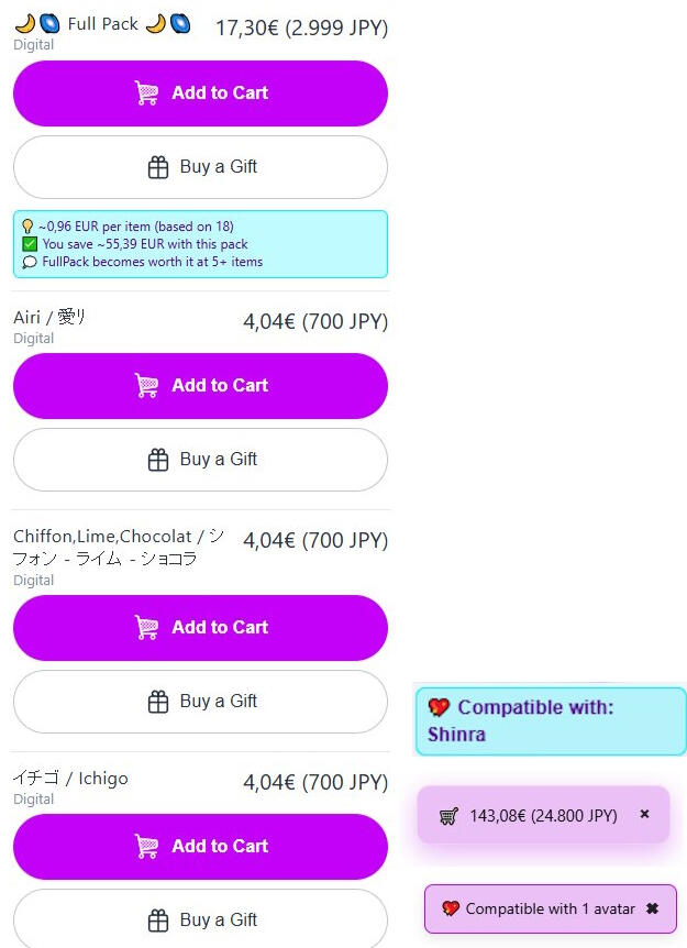 (Note Prices may vary due to currency rate changes and fees)Also check your cart, purchases or Favorited, a new popup with your whole carts value appeared!